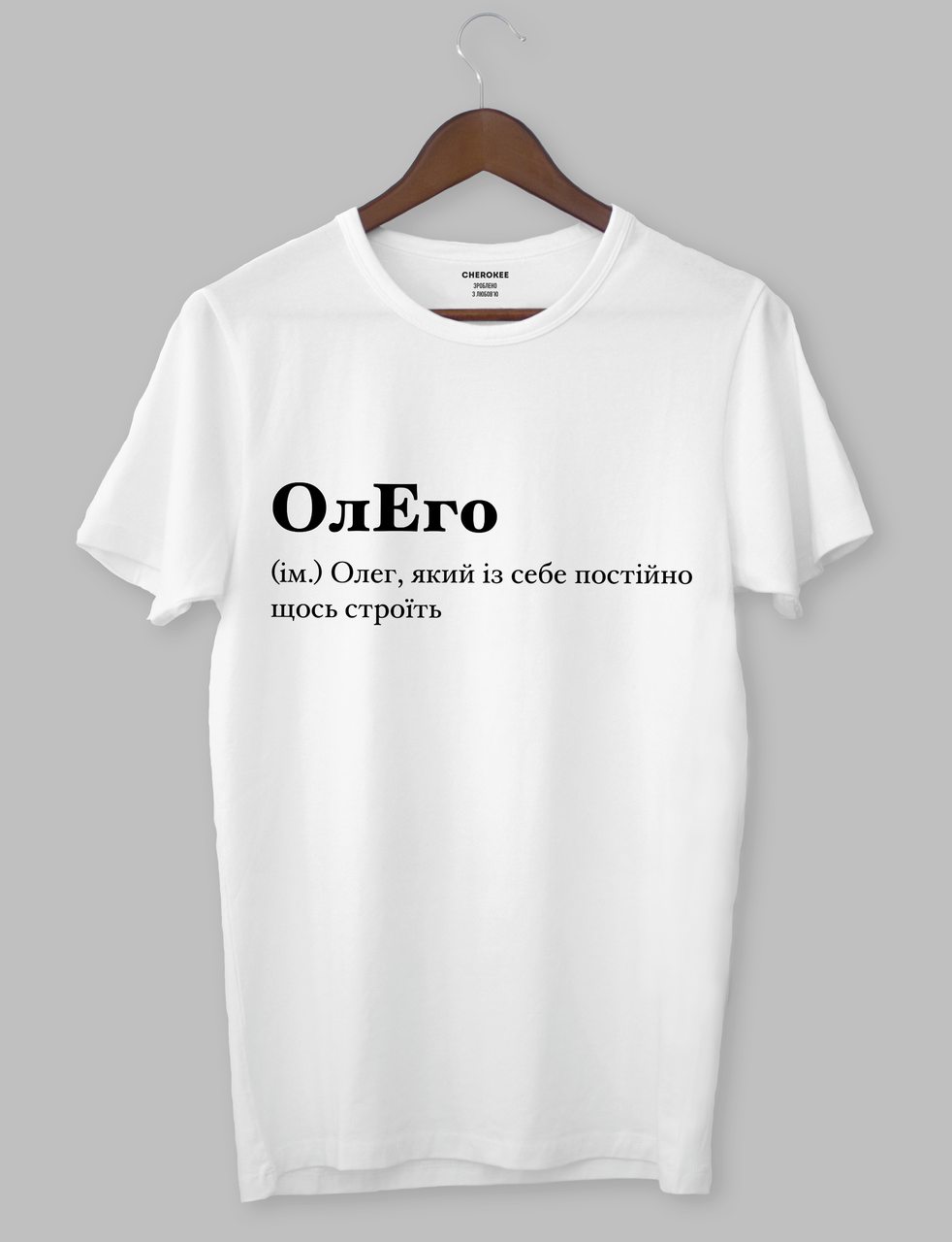 Футболка з оригінальним дизайном "ОлЕго (ім.) Олег, який із себе постійно щось строїть"